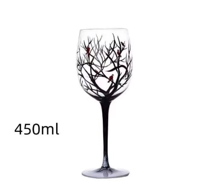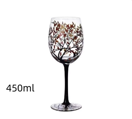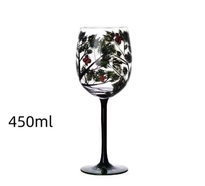 Dessa glas är arrangerade i en rad på en svart yta, och den detaljerade konstverken på varje glas gör dem visuellt intressanta och perfekta för att visa upp säsongsteman. De är inte bara praktiska som vinglas, utan kan även användas som äggkoppar, vilket gör dem mångsidiga och dekorativa.
