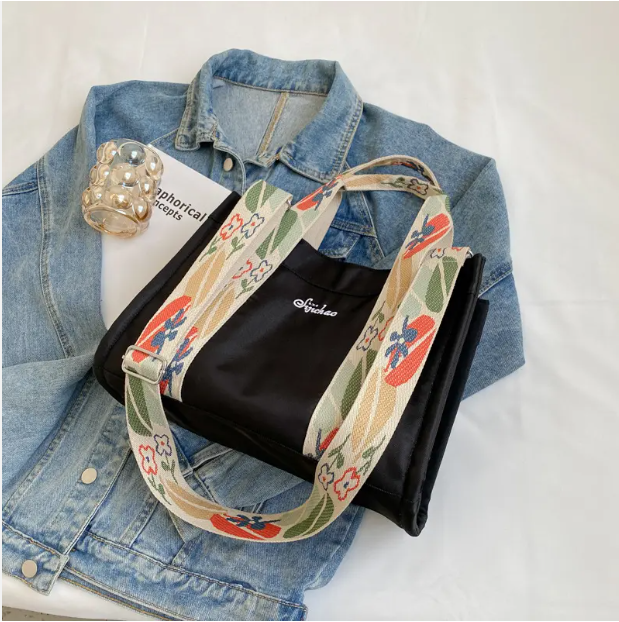 Tote bag med axelrem i etnisk stil med dragkedja
