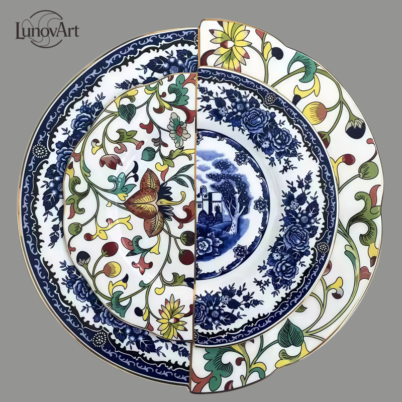 Bone China Plates of East and West Greenware & Famille Rose Fusion Plate